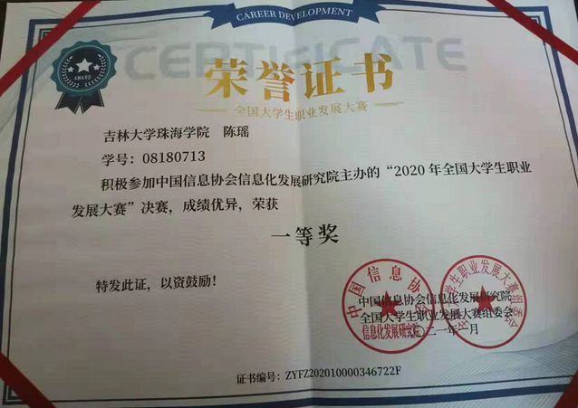 图9:2020年获全国大学生职业发展大赛一等奖