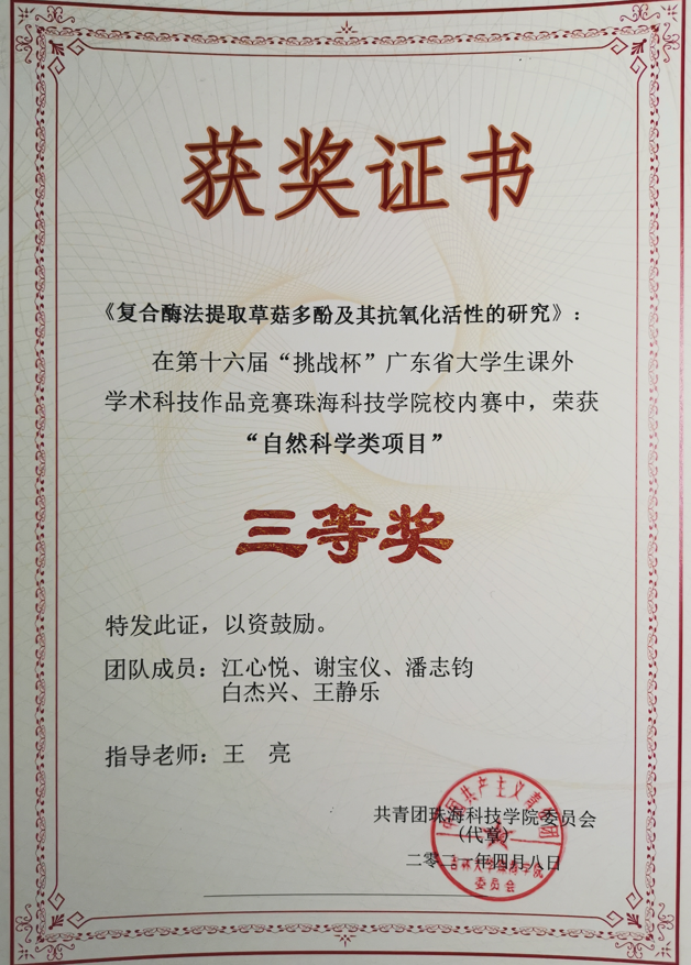 本专业学生在各级英语竞赛、数学竞赛、自然科学专业竞赛获奖多项。