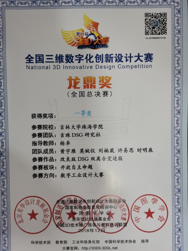 国赛一等奖作品及证书----创新双离合器变速器