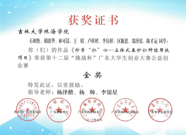 “挑战杯”广东大学生创业大赛公益创业赛 金奖