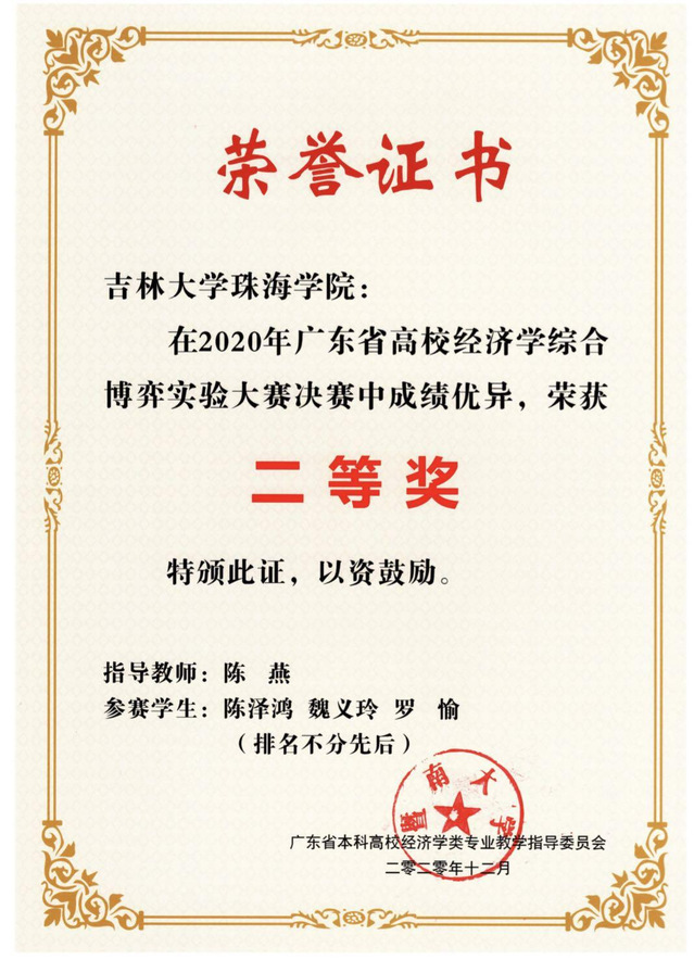 2020广东高校经济学综合博弈实验大赛 二等奖