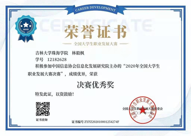 全国大学生职业发展大赛决赛 优秀奖